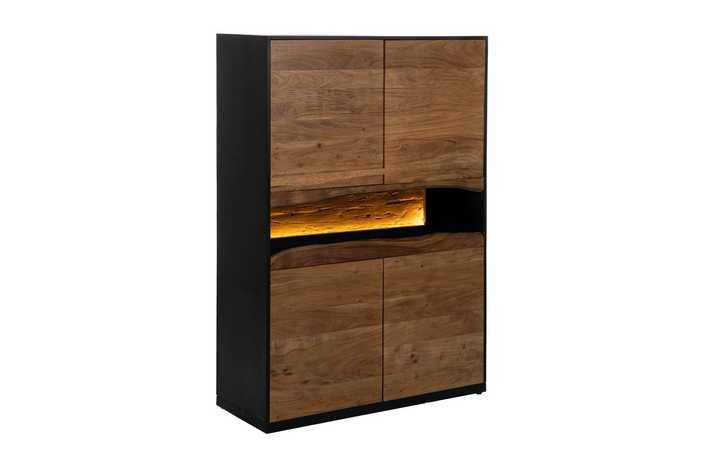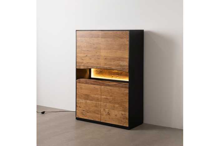 Material: madera de acacia en puertas y parte delantera, estructura de DM. Incluye luz LED.
