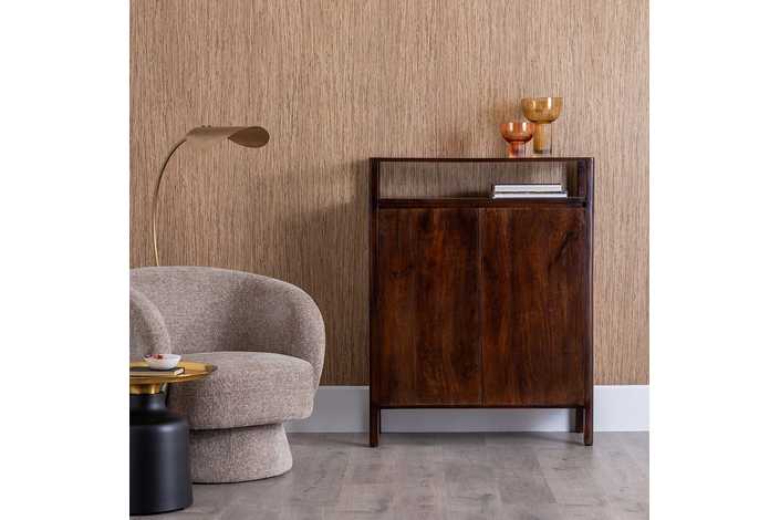 Material: madera de mango. Puertas: 43,5x82cm. Altura patas: 16cm. Altura hueco: 15cm.