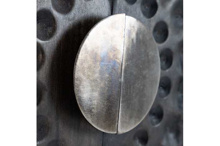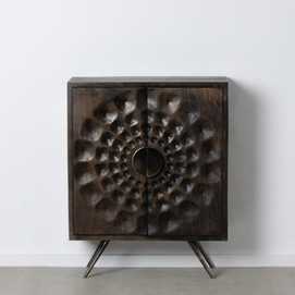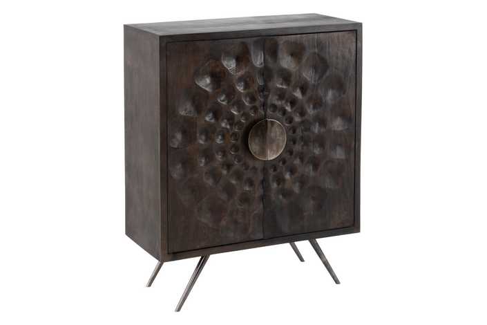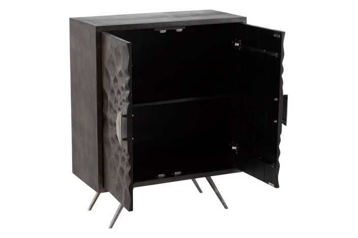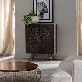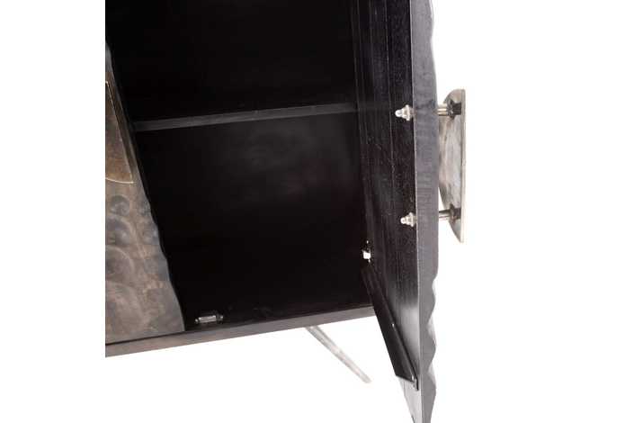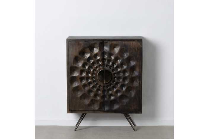 Material: madera de mango, metal. Medida puertas: 41,5x82,5cm. Altura patas: 22cm.