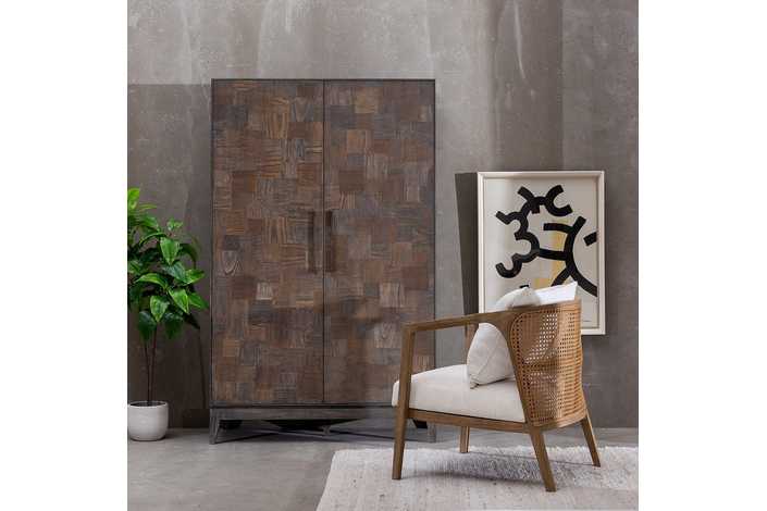 Material: Madera de mindi, dm. Altura de las patas: 12cm. Medida de las puertas: 54x160cm. Incluye lejas interiores, altura: 37,5cm.