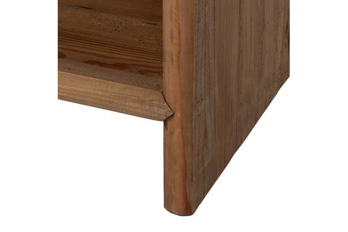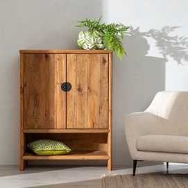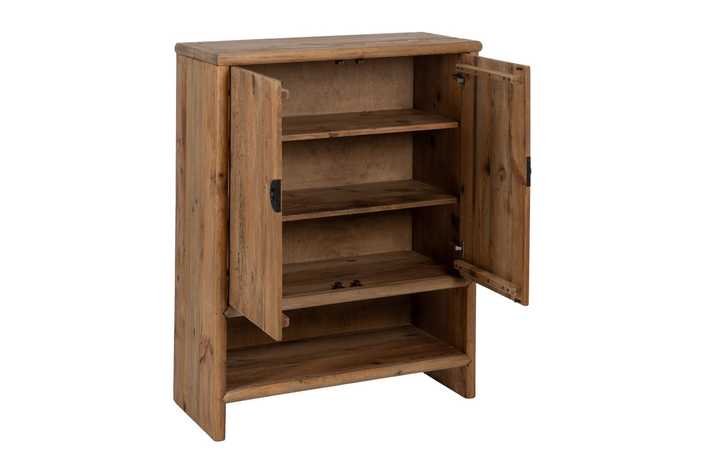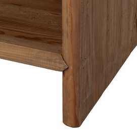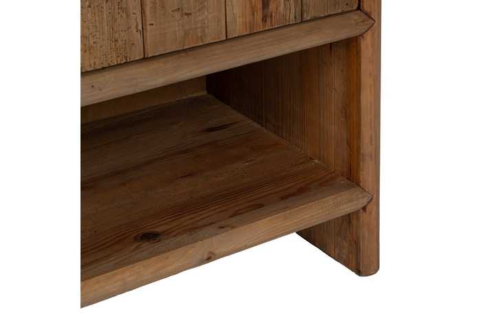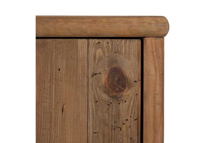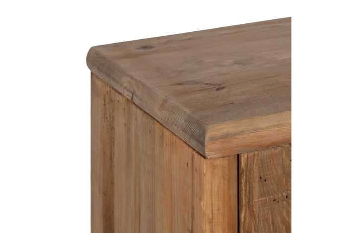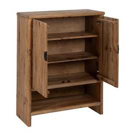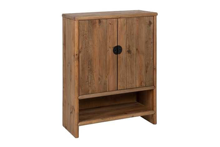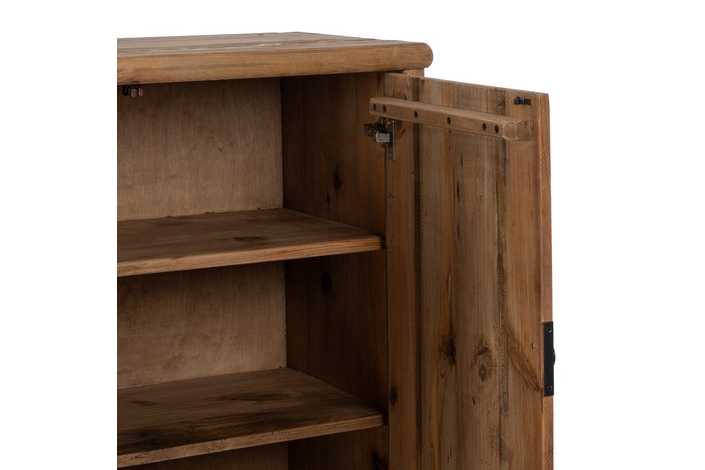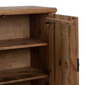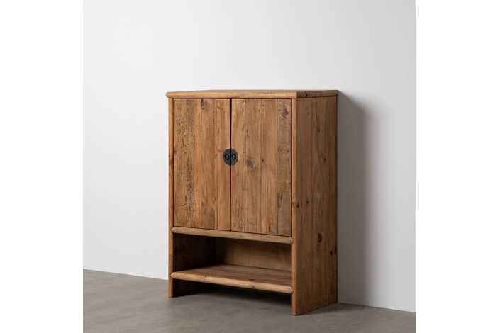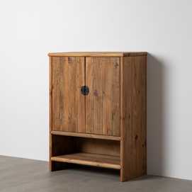 Material: madera de pino reciclada. Puertas: 45x80,5cm. Hueco: 90x25cm. Altura patas: 12cm.