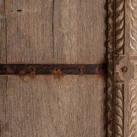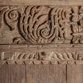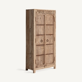 Armario socken, en color marrón, de estilo colonial. Fabricado en madera de teka, combinado con hierro.
