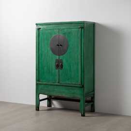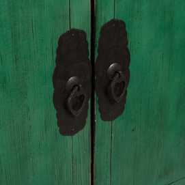 Estructura de madera de pino reciclada. Material cajones: madera de pino y DM. Material tiradores: Cobre. Medidas de las puertas: 47x103,5cm. Altura patas: 32 cm. Peso soportado: 100kgs.