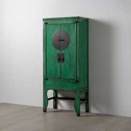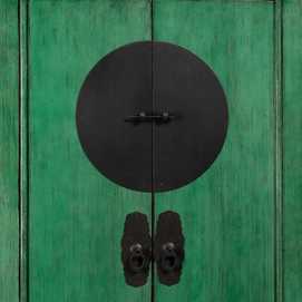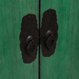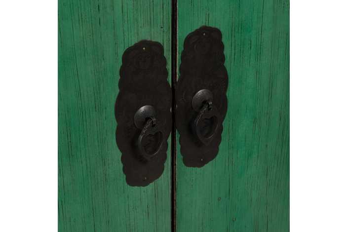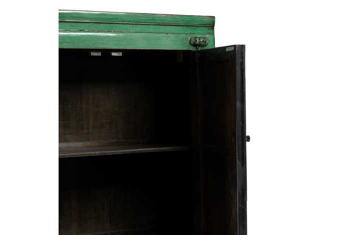 Estructura de madera de pino reciclada. Material cajones: madera de pino y DM. Material tiradores: Cobre. Medidas de las puertas: 35,5x109,5cm. Altura patas: 44 cm. Peso soportado: 100kgs. Pieza artesanal, la medida puede variar ligeramente.