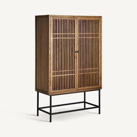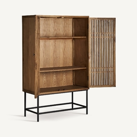 Añade un toque de elegancia a tu salón con el Armario Xuzhou de VICAL home. Hecho de madera de olmo y hierro en un tono natural, este armario vitrina destaca por su diseño y calidad. Con medidas de 100x45x160cm, es perfecto para mostrar y almacenar los objetos más preciados. Combinación de estética y elegancia.