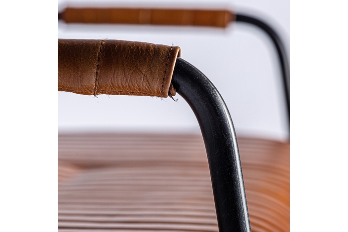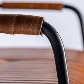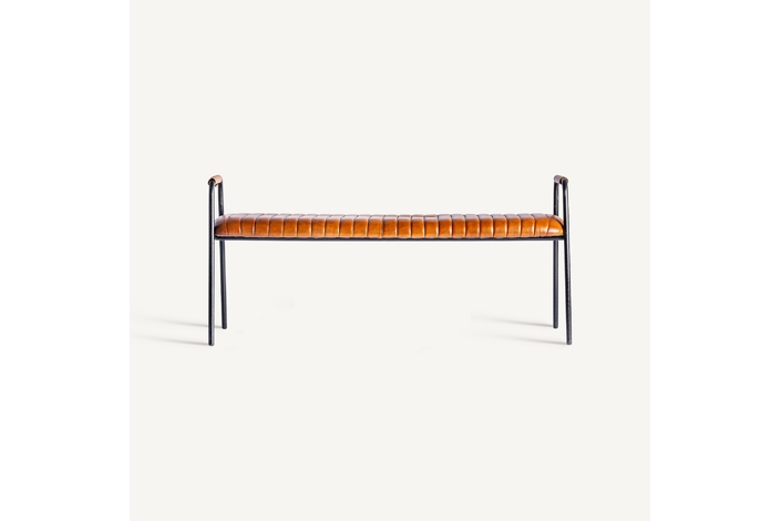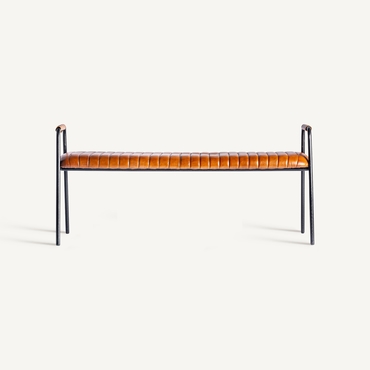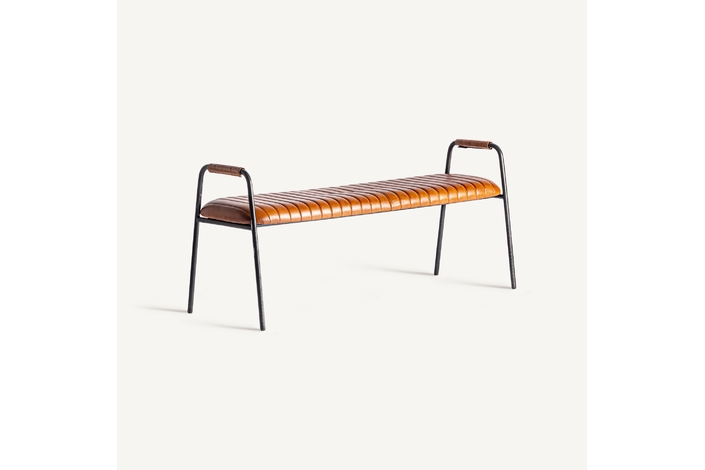 Banco almstock, en color marrón, de estilo vintage. Fabricado en piel, combinado con hierro.