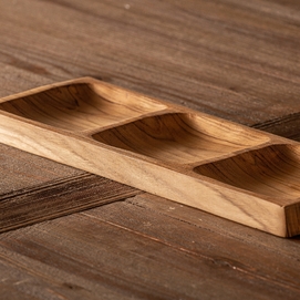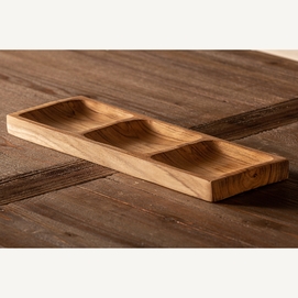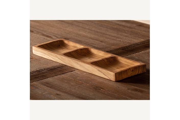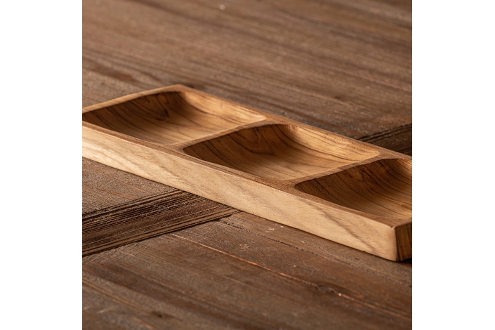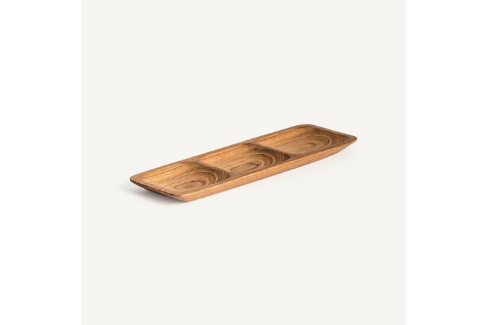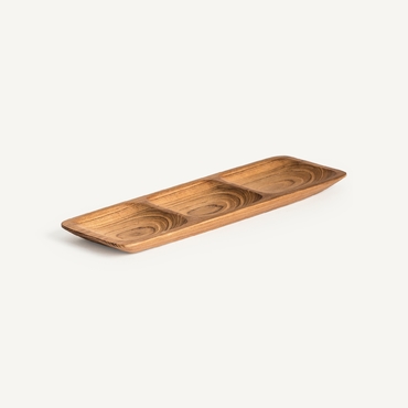 Bandeja ikuah, en color marrón, de estilo étnico. Fabricado en madera de teka.