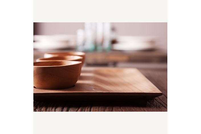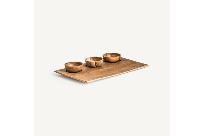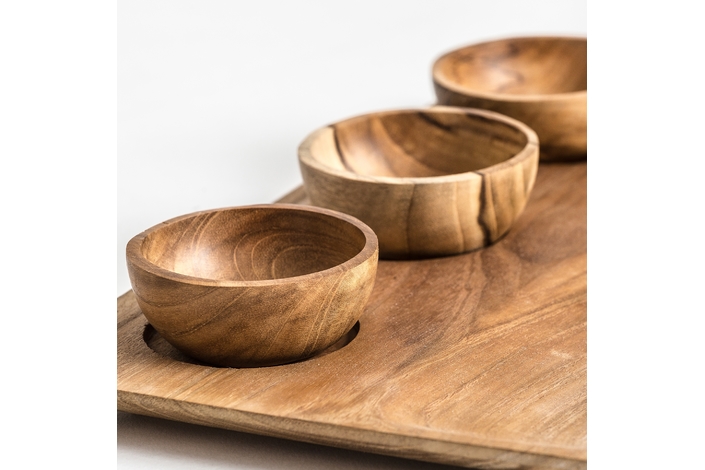 Bandeja j/4 ikuah, en color marrón, de estilo étnico. Fabricado en madera de teka.