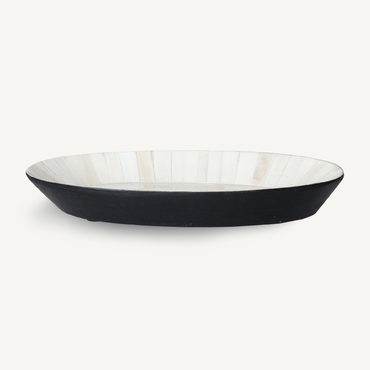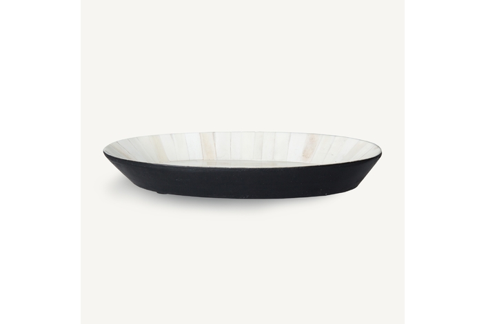 Bandeja zonza, en color blanco/negro, de estilo art deco. Fabricado en hueso.