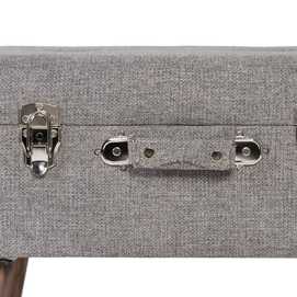 Tejido 97% poliéster - 3% nilón. Gramaje tejido: 340g/m2. Estructura: Dm - patas madera de pino. Altura pata: 24cm. Hueco interior: 48x32.5x15cm. Relleno: foam Patas para montar. Peso máximo soportado: 150kgr.