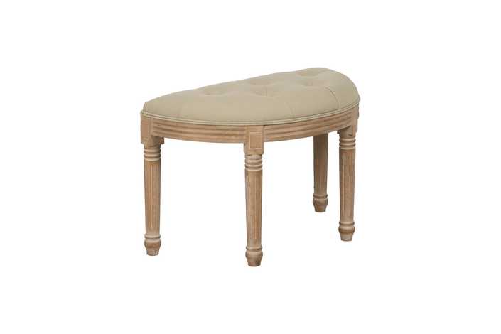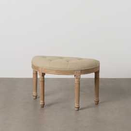 Madera de caucho. Tejido: 70% Poliéster, 30% algodón. Altura el asiento:48cm. Altura de las patas:36cm. Distancia entre las patas:32 y 27cm. Gramaje:470gr/m2 Densidad:30 kgs/m3. Peso máximo soportado: 130kgs. No apilable. Las patas requieren montaje. Cumple la normativa europea UNE EN 12520:2016.
