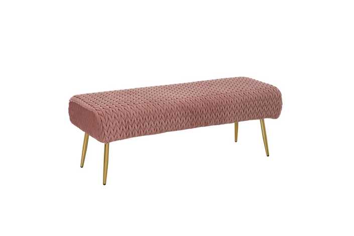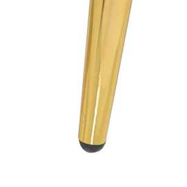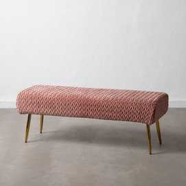 Material: Dm - patas hierro metalizado oro Tejido: 100% poliéster Relleno: foam 30mm parte superior, laterales foam 5mm. Patas para montar. Altura pata: 23.5cm.