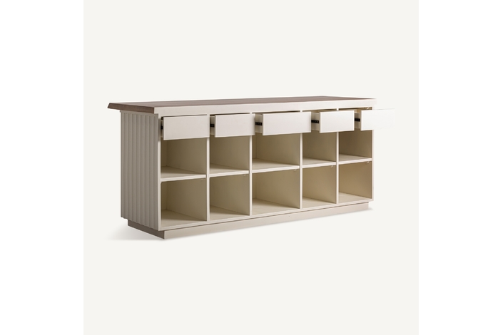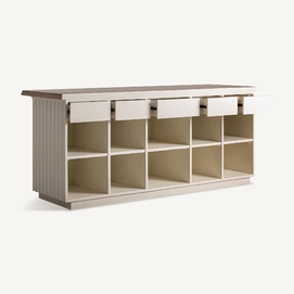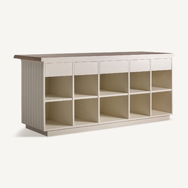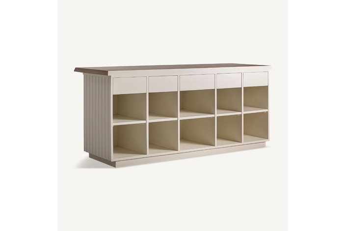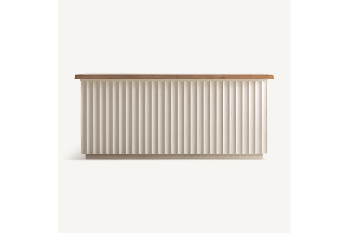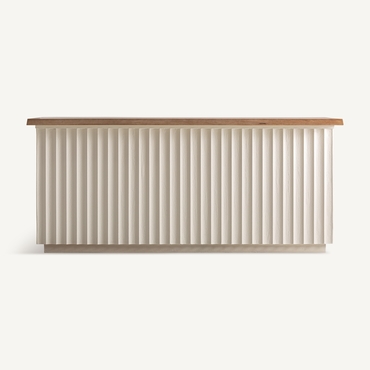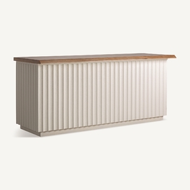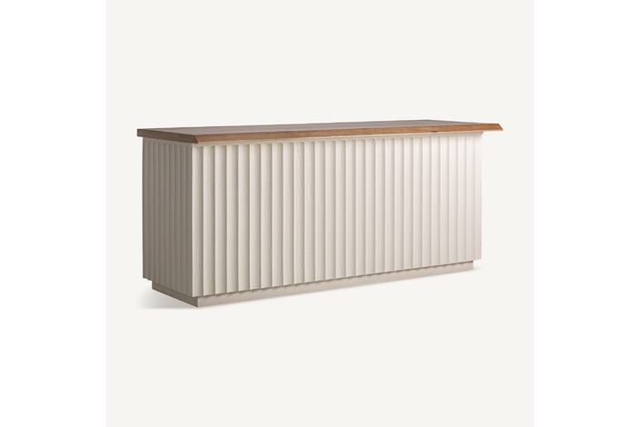 Barra de bar, fabricado en madera de mango en color blanco, combinado con madera de acacia en color marrón.