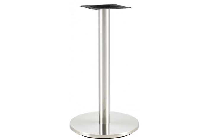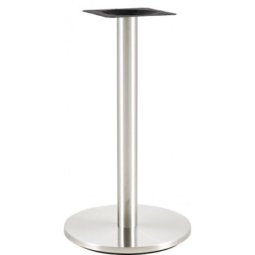 Base de mesa con pie central, acero inoxidable acabado pulido satinado. Base de 45 cms. de diámetro. Altura 72 cms. Para uso en interiores. Mesa alta a juego