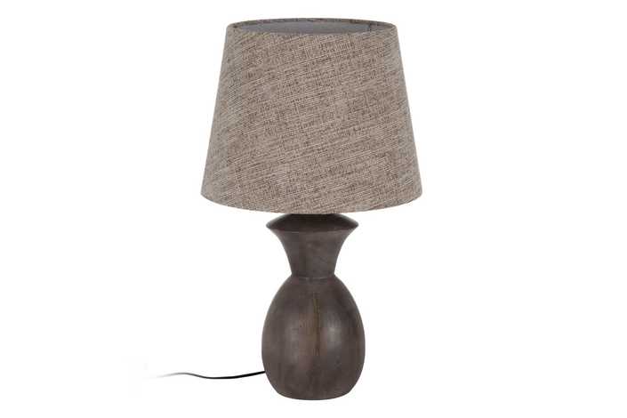 Material: madera de mango Eficiencia energetica clase: B Voltaje: 220-240 Bombilla: 40W (no incluida) Casquillo: E 27 Cable negro: 200cm. Medida base: 19x19x34cm. Tulipa propuesta en imagen: 612326 (beige-crema) también 612338 en tonos grises.