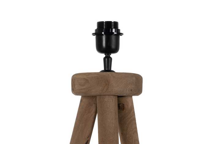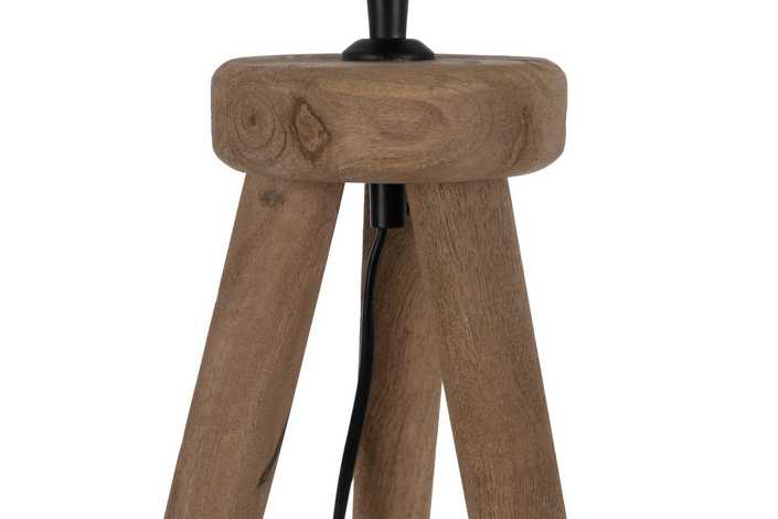 Material: madera de mango Eficiencia energetica clase: B Voltaje: 220-240 Bombilla: 40W (no incluida) Casquillo: E 27 Cable negro: 200cm. Medida base: 24x24x48cm. Tulipa propuesta en imagen: 612314
