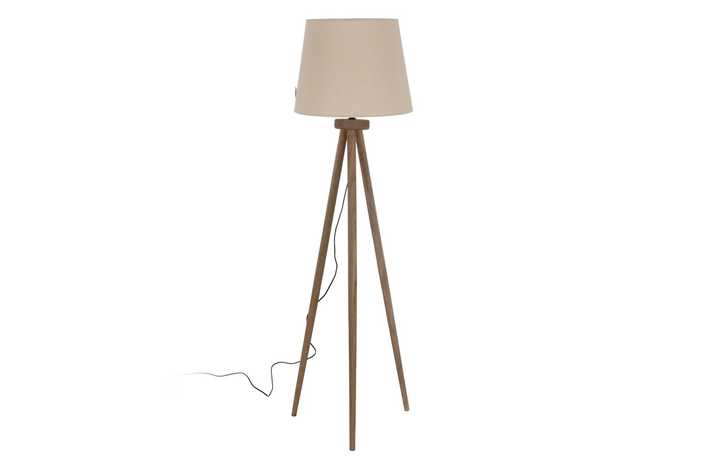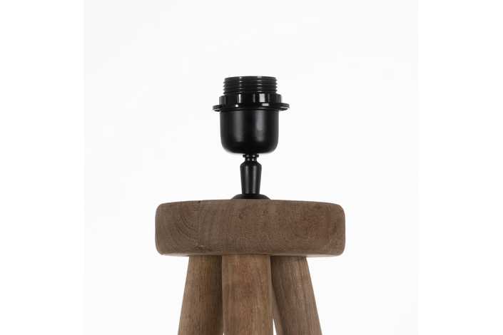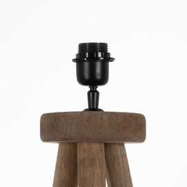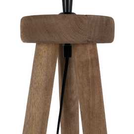 Material: madera de mango Eficiencia energetica clase: B Voltaje: 220-240 Bombilla: 40W (no incluida) Casquillo: E 27 Cable negro: 200cm. Medida base: 50x50x122cm. Tulipa propuesta en imagen: 612315