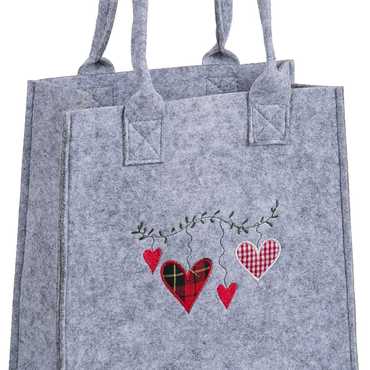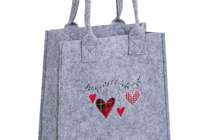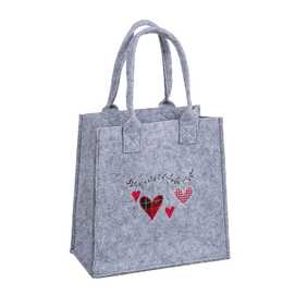 BOLSO CORAZONES FIELTRO GRIS 23 X 23 X 12 CM