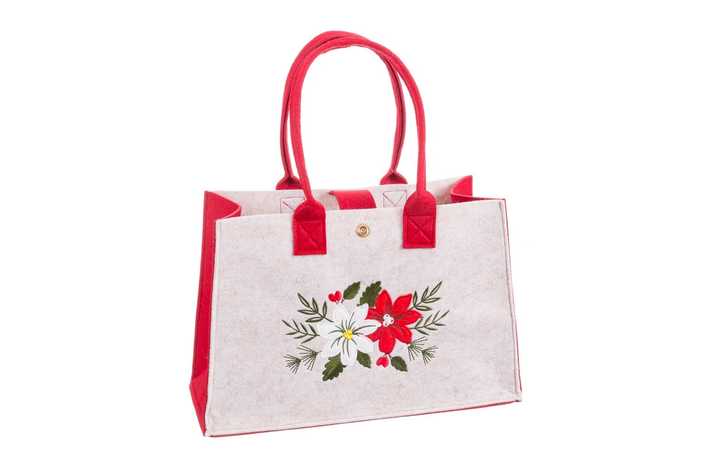 BOLSO POINSETTIA FIELTRO BEIGE-ROJO 23 X 15 X 35 CM