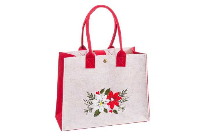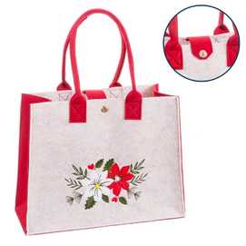 BOLSO POINSETTIA FIELTRO BEIGE-ROJO 27 X 15 X 35 CM