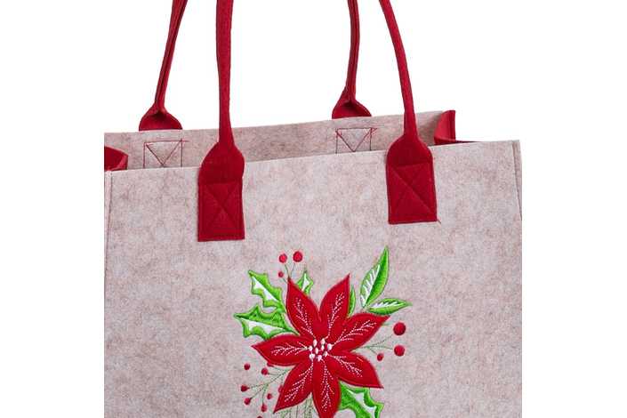 BOLSO POINSETTIA FIELTRO BEIGE-ROJO 35 X 27 X 15 CM