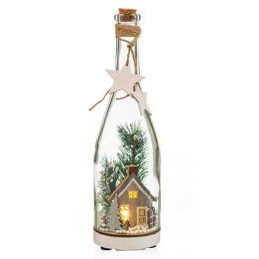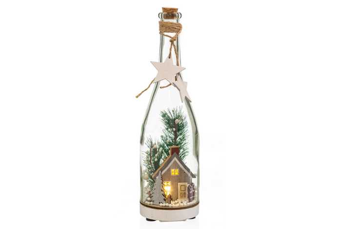 BOTELLA CASA CON LUZ VIDRIO 8,50 X 8,50 X 29,50 CM