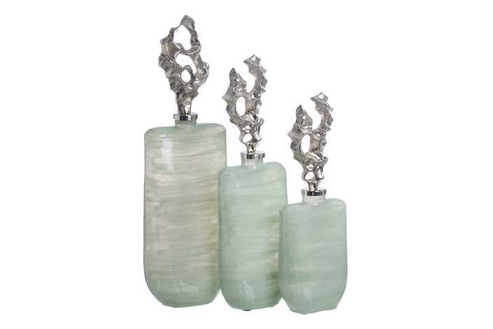 BOTELLA DECORATIVA VERDE-PLATA CRISTAL 16 X 10 X 46 CM