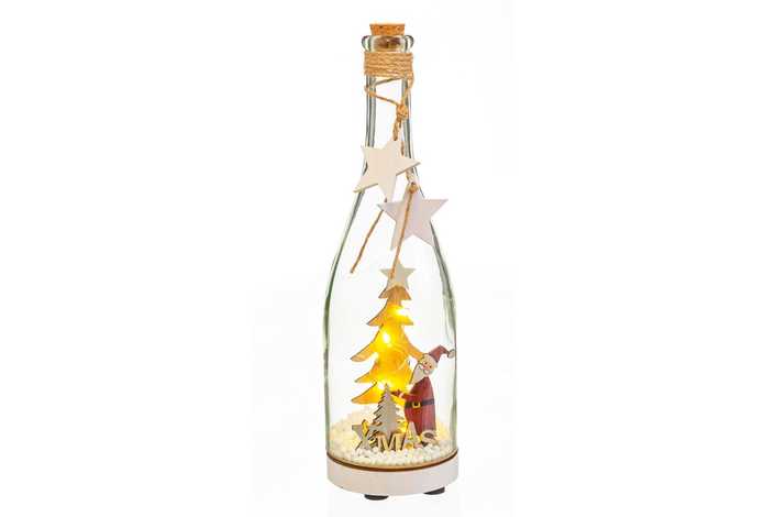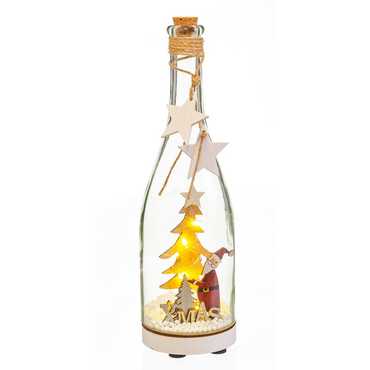 BOTELLA PAPA NOEL CON LUZ VIDRIO 8,50 X 8,50 X 29,50 CM