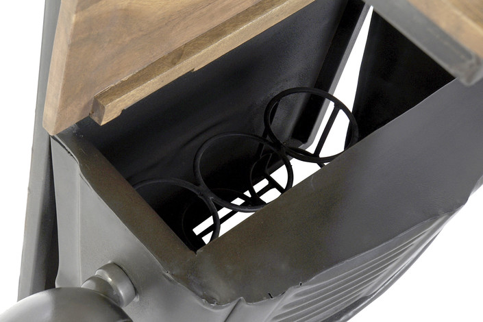 Dimensiones (cm) Longitud 83  |  Fondo 30  |  Altura 104 Peso neto producto (kg) 16,80 Material Hierro  |  Acacia  |  Cristal
