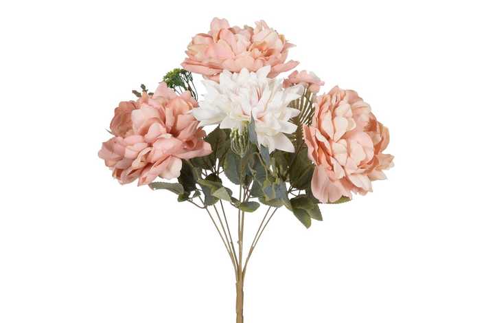 BOUQUET MIXTO ROSA PVC-TEJIDO DECORACIÓN 41 CM