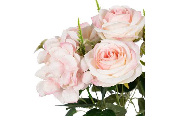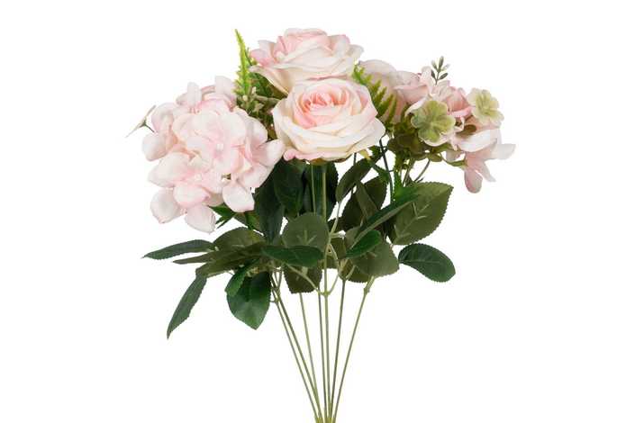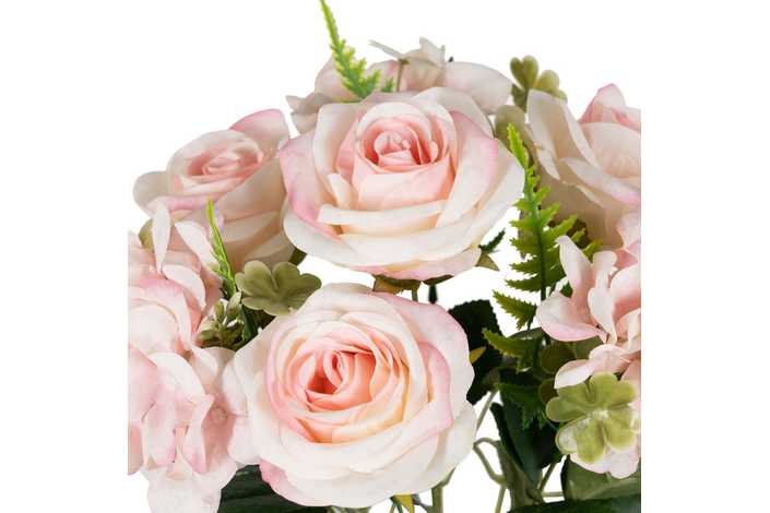 BOUQUET ROSAS ROSA PVC-TEJIDO DECORACIÓN 43 CM