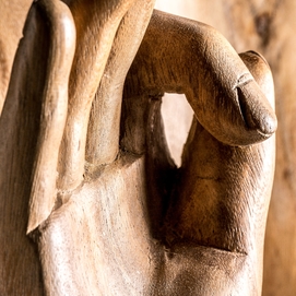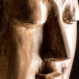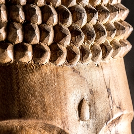 Budha, en color marrón envejecido, de estilo oriental. Fabricado en madera tropical.