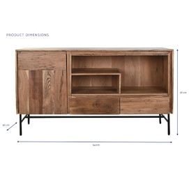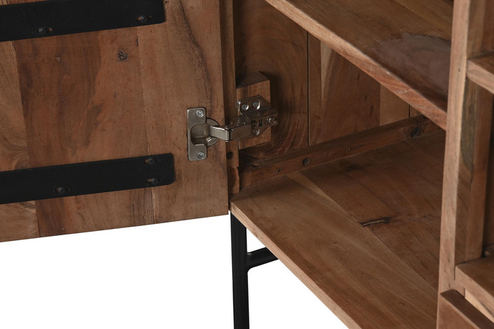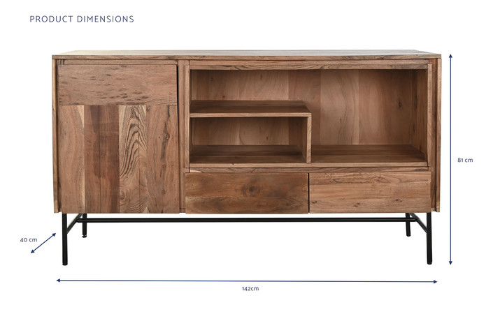 Dimensiones (cm) Longitud 142  |  Fondo 40  |  Altura 81 Peso neto producto (kg) 54,70 Material Acacia  |  Metal Descargas Montaje