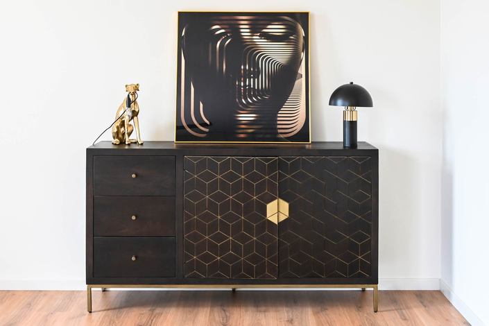 Dimensiones (cm) Longitud 160  |  Fondo 40  |  Altura 90 Peso neto producto (kg) 73,09 Material Acacia  |  Metal