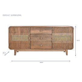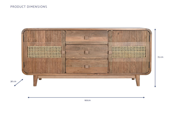 Dimensiones (cm) Longitud 160  |  Fondo 38  |  Altura 75 Peso neto producto (kg) 62,00 Material Madera  |  Jamun
