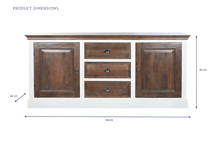Dimensiones (cm) Longitud 180  |  Fondo 46  |  Altura 83 Peso neto producto (kg) 76,35 Material Mango