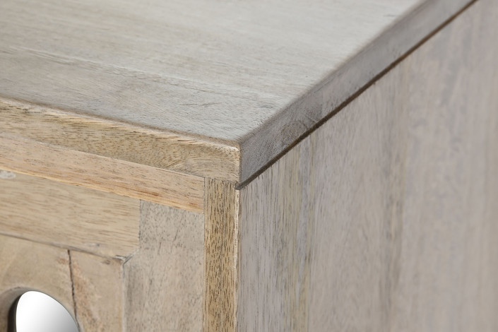 Dimensiones (cm) Longitud 175  |  Fondo 40,5  |  Altura 83,5 Peso neto producto (kg) 58,80 Material Mango  |  Espejo