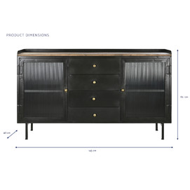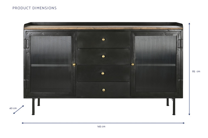 Dimensiones (cm) Longitud 145  |  Fondo 40  |  Altura 85 Peso neto producto (kg) 43,00 Material Mango  |  Metal