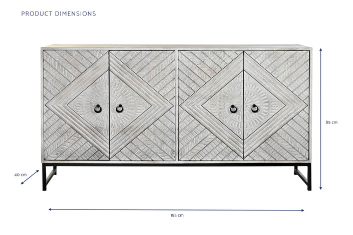 Dimensiones (cm) Longitud 155  |  Fondo 40  |  Altura 85 Peso neto producto (kg) 54,50 Material Mango  |  Metal