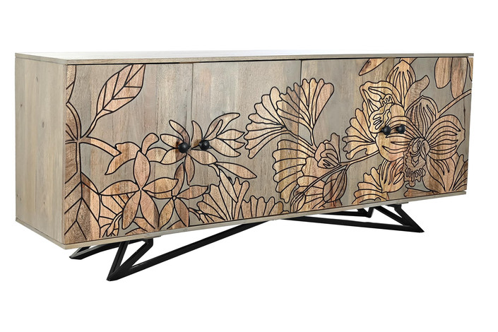 BUFFET MANGO METAL 177X45X74 FLORES GRIS