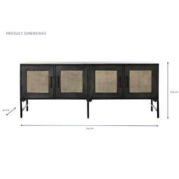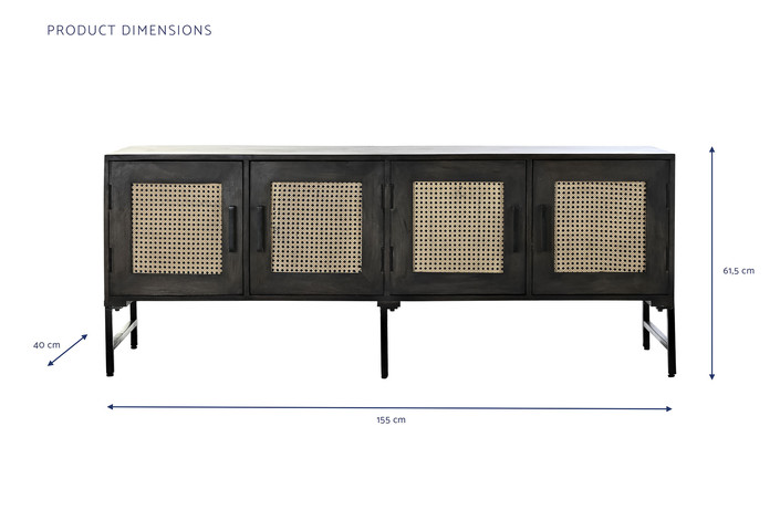 Dimensiones (cm) Longitud 155  |  Fondo 40  |  Altura 61,5 Material Mango  |  Ratan