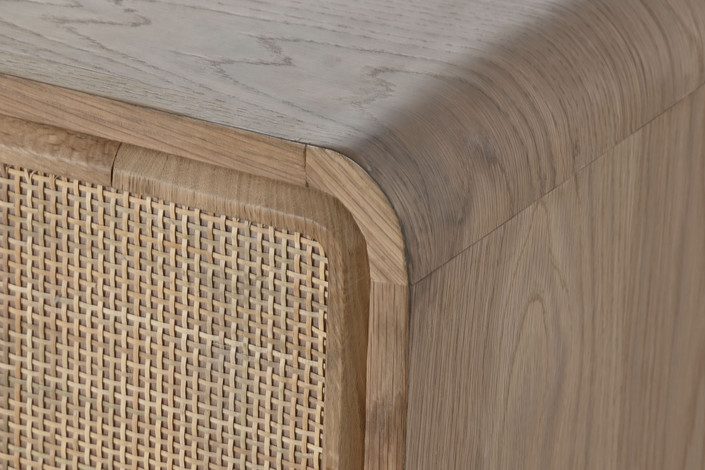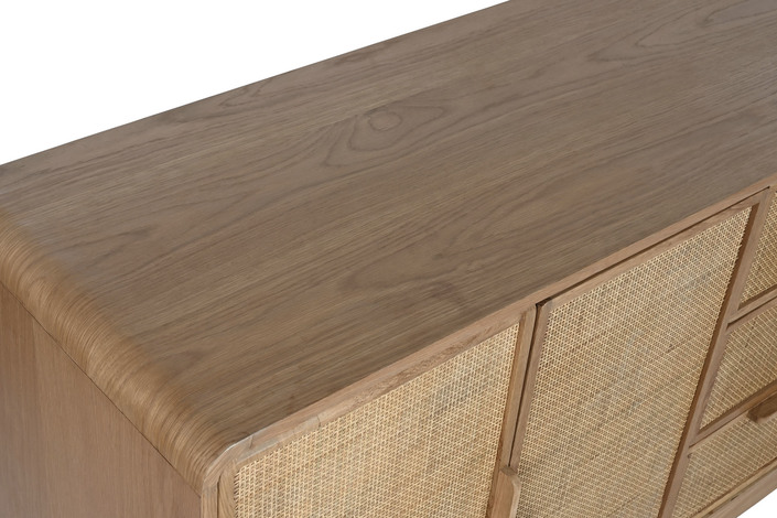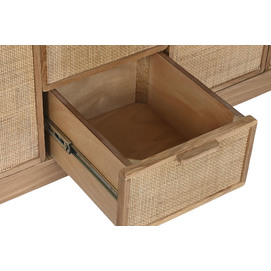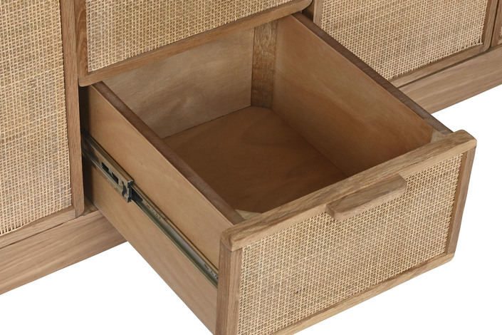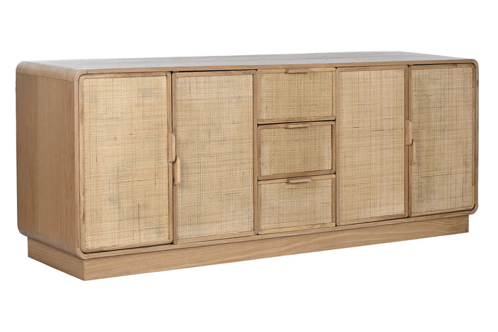 Dimensiones (cm) Longitud 182  |  Fondo 45  |  Altura 71 Peso neto producto (kg) 77,20 Material Roble  |  Ratan  |  Mdf