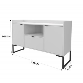 Buffet TOKYO, metal negro, 2 puertas y cajón, MDP color blanco, 135 cms.
