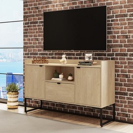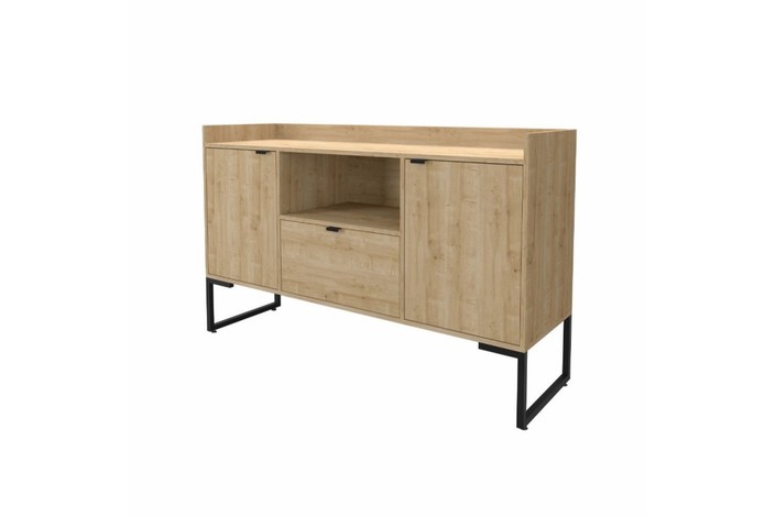 Buffet TOKYO, metal negro, 2 puertas y cajón, MDP color miel, 135 cms.