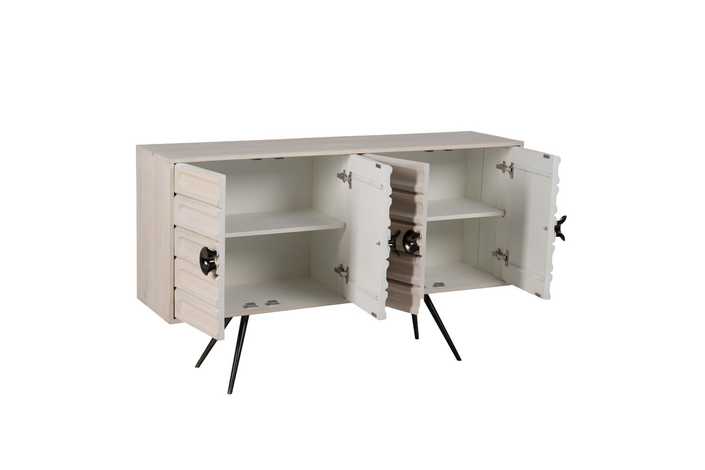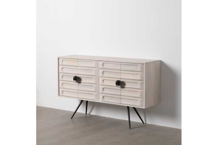 Material: madera de mango, hierro. Altura patas: 30,5cm. Puertas: 37x57cm.