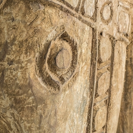 Busto caballo, en color marrón envejecido, de estilo étnico. Fabricado en madera antigua.