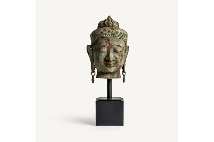 Busto thailandesa, en color tonos en verde envejecido, de estilo oriental. Fabricado en madera tropical.