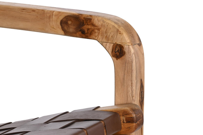 Dimensiones (cm) Longitud 66  |  Fondo 73  |  Altura 96 Peso neto producto (kg) 8,00 Material Teca  |  Piel