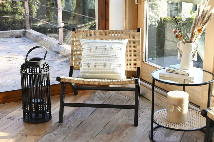 Dimensiones (cm) Longitud 65  |  Fondo 78  |  Altura 68 Peso neto producto (kg) 8,00 Material Teca  |  Ratan