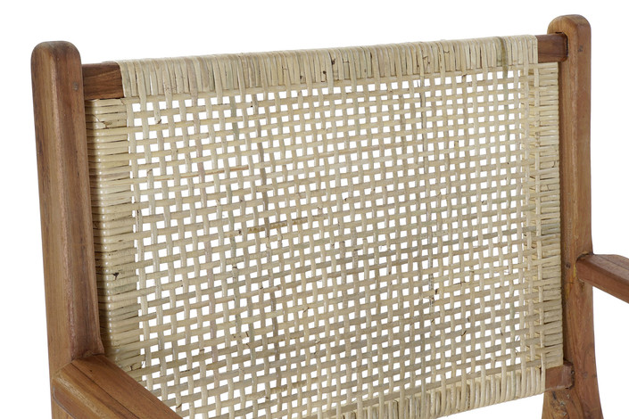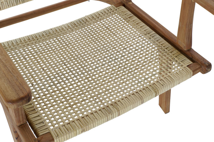 Dimensiones (cm) Longitud 69  |  Fondo 78  |  Altura 68 Peso neto producto (kg) 11,00 Material Teca  |  Ratan